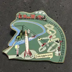 Disneyland Map - Tomorrowland is a Limited Edition (LE) 1500 pin in the Cast Exclusive Disneyland Map - Full Set - Park Atlas Pin Set 2-pin set from the DLR Cast Member Pin of the Month pin series. It was originally released on , 2000 and was available from Disneyland Resort .