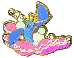 Blue Crustacean Playing Clamshell Drums is an Open Edition pin from the Little Mermaid 35th Anniversary - Life is the Bubbles Mystery Collection pin series. It was originally released in March, 2024 and was available from Loungefly .