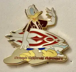 Donald w surf board. Arm moves is an Open Edition pin from the Disney's California Adventure pin series. It was available from Disneyland Resort .