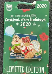 Dale with Santa is a Limited Edition (LE) 1500 pin from the EPCOT International Festival of the Holidays pin series. It was originally released on , 2020 and was available from Walt Disney World .