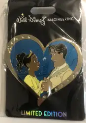 Tiana and Naveen is a Limited Edition (LE) 300 pin from the Valentine's Gem Hearts pin series. It was originally released on , 2024 and was available from Walt Disney Imagineering .