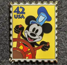 Steamboat Willie or Mickey Mouse is an Open Edition pin from the US Postal Service Stamp pin series. It was originally released on , 2008 and was available from Disneyland Resort .