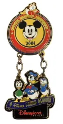 Donald Duck & Nephews Dangle is a Limited Edition (LE) pin from the Official Disneyana Convention - A Disney Family Reunion pin series. It was originally released on , 2001 and was available from Disneyland Resort .