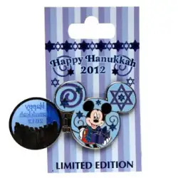 Happy Hanukkah 2012 is a Limited Edition (LE) 1500 pin from the Hanukkah pin series. It was originally released in December, 2012 and was available from Multiple Sources (WDW, DLR, etc.).