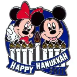 Happy Hanukkah 2011 is a Limited Edition (LE) 1500 pin from the Hanukkah pin series. It was originally released in December, 2011 and was available from Multiple Sources (WDW, DLR, etc.).