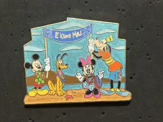E Komo Mai at Polynesian is a Limited Edition (LE) 250 pin from the Destination D 2014: Attraction Rewind pin series. It was originally released in November, 2014 and was available from Walt Disney Imagineering .