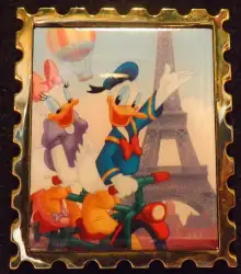 Donald & Daisy is an Open Edition pin from the Paris Stamp Starter Set pin series. It was originally released on , 2013 and was available from Disneyland Resort Paris .