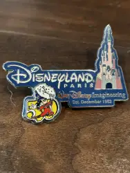 Disneyland Paris Sorcerer Mickey accompanied by Sleeping Beauty Castle is a Limited Edition (LE) 1952 pin from the Disneyland Celebrates WDI's 50th Anniversary pin series. It was originally released on , 2003 and was available from Disneyland Resort .