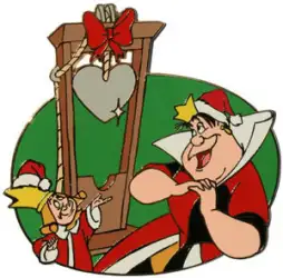 King Gifting Queen of Hearts A Guillotine is a Limited Edition (LE) 100 pin from the Christmas Villains pin series. It was originally released in January, 2004 and was available from Disney Auctions .