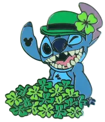 Clover Saint Patrick's Day Stitch is an Open Edition pin in the WDW Hidden Disney Mystery Pouch (Blue) 30-pin set from the WDW Hidden Disney Series 2024: Stitch Holidays Collection pin series. It was originally released on , 2024 and was available from Walt Disney World .