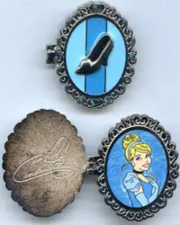 Cinderella hinged icon is a Limited Edition (LE) 600 pin from the Princess Symbol Locket pin series. It was originally released on , 2013 and was available from Disneyland Resort Paris .