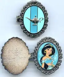 Jasmine hinged icon is a Limited Edition (LE) 600 pin from the Princess Symbol Locket pin series. It was originally released on , 2013 and was available from Disneyland Resort Paris .
