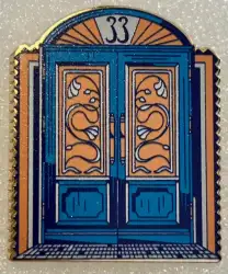 Foyer Doors is a Limited Edition (LE) 500 pin in the Alfred Collection 5-pin set from the Club 33 pin series. It was originally released in January, 2024 and was available from Disneyland Resort .
