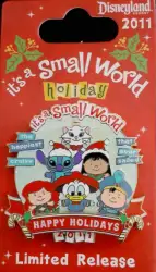 its a small world Happy Holidays 2011 is a Limited Release pin from the it's a small world holiday pin series. It was originally released on , 2011 and was available from Disneyland Resort .