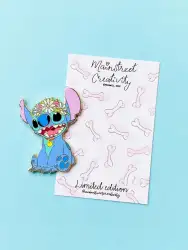 Stitch Flower is a Limited Edition (LE) 50 pin in the Flower Pets 17-pin set from the Fantasy Pin Series: MainStreetCreativity pin series. It was originally released on , 2021 and is an Unlicensed (Fantasy) pin, so therefore it is not allowed to be traded in the Disney Parks.