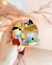 Pin features Cleo , Figaro , Stitch and Pinocchio from Lilo and Stitch and Pinocchio (movie)