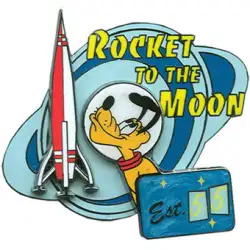 Rocket to the Moon - Pluto is a Limited Edition (LE) 755 pin from the Dateline: Disneyland 1955 - 55 Years Series pin series. It was originally released on , 2010 and was available from Disneyland Resort .