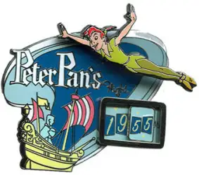 Peter Pan's Flight is a Limited Edition (LE) 755 pin from the Dateline: Disneyland 1955 - 55 Years Series pin series. It was originally released on , 2010 and was available from Disneyland Resort .