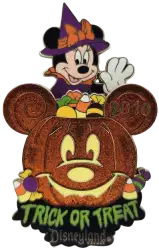 Witch Minnie Pop-Up Pumpkin is a Limited Edition (LE) 1000 pin from the Trick or Treat 2010 pin series. It was originally released on , 2010 and was available from Disneyland Resort .