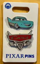 Flo & Cars Land Logo is an Open Edition pin from the Cars Land pin series. It was originally released in April, 2024 and was available from Multiple Sources (WDW, DLR, etc.).