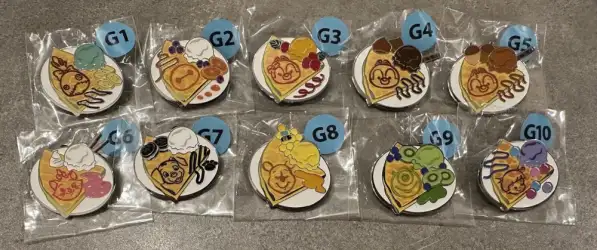 Crepes - Full Set is a Limited Edition (LE) 600 10-pin set from the Pin Trading Carnival 2024 pin series. It was originally released on , 2024 and was available from Hong Kong Disneyland .