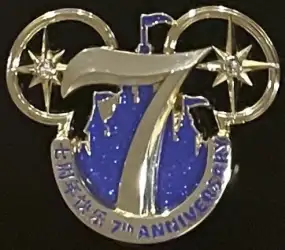 Castle and Stars Mickey Icon Anniversary Logo is a Limited Edition (LE) 800 pin from the Shanghai Disney Resort 7th Anniversary pin series. It was originally released on , 2023 and was available from Shanghai Disney Resort .