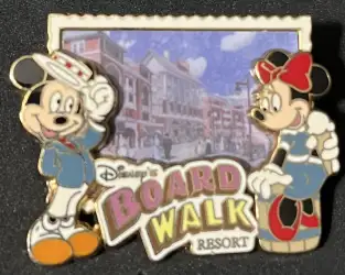 Mickey & Minnie is an Open Edition pin from the Disney's Boardwalk Resort pin series. It was originally released on , 2009 and was available from Walt Disney World .