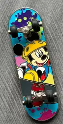 Mickey with paint splatter skateboard is an Open Edition pin from the Skateboards pin series. It was originally released 2025 and was available from Disneyland Resort .