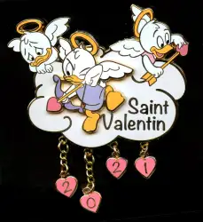 Huey Dewey and Louie Saint Valentin is a Limited Edition (LE) 700 pin from the Valentine's Day pin series. It was originally released in February, 2021 and was available from Disneyland Resort Paris .