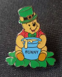 Winnie the Pooh with green hat and bow tie is a Limited Edition (LE) 2000 pin from the St. Patrick's Day pin series. It was originally released on , 2001 and was available from Multiple Sources (WDW, DLR, etc.).