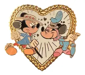 Mickey and Minnie is a Limited Edition (LE) 2000 pin from the Sweethearts Candy Box Set pin series. It was originally released in February, 2004 and was available from Disney Store US .