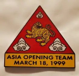 Animal Kingdom Asia is a Limited Edition (LE) pin from the Opening Team - Cast Member Exclusive pin series. It was originally released on , 1999 and was available from Theme Park Cast Member Exclusive .