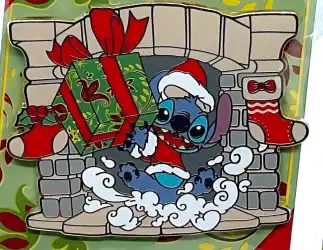 Santa Stitch in a Fireplace is a Limited Edition (LE) 425 pin from the Christmas 2019 pin series. It was originally released on , 2019 and was available from Disneyland Resort Paris .