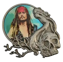 Pin features Jack Sparrow from Pirates of the Caribbean (movies)