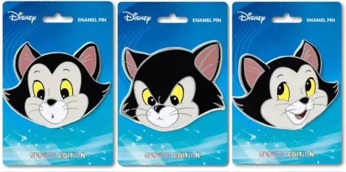 Figaro Portraits (set of 3) is a Limited Edition (LE) 300 pin from the Pink A La Mode (PALM) - Disney Portrait Series pin series. It was originally released on , 2024 and was available from an Officially Licensed Disney trading pin vendor (see description for more information).