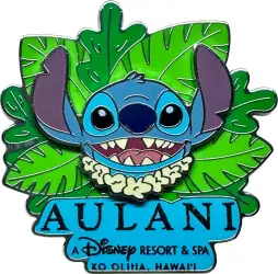 Tropical Leaves Stitch with Lei is an Open Edition pin from the Aulani Resort & Spa pin series. It was available from Disney Vacation Club .