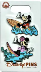 Mickey & Minnie Surfing - Full Set is an Open Edition 2-pin set from the Aulani Resort & Spa pin series. It was originally released on , 2024 and was available from Disney Vacation Club .