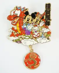 New Year 2012 - Mickey, Minnie, and Mushu is an Open Edition pin from the New Year's Eve/Day pin series. It was originally released in December, 2011 and was available from Tokyo Disneyland Resort .