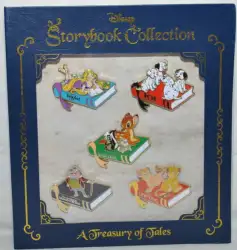 A Treasury of Tales 5 Pin Set #4 is a Limited Edition (LE) 250 pin from the Storybook Collection - A Treasury of Tales pin series. It was originally released on , 2017 and was available from Walt Disney Imagineering .