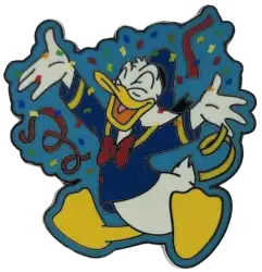 Celebrating 35 Magical Years Starter Lanyard Set - Donald Jumping with Confetti ONLY is an Open Edition pin in the Celebrating 35 Magical Years Starter Lanyard Set - Full Set 8-pin set from the Walt Disney World 35th Anniversary pin series. It was originally released on , 2006 and was available from Walt Disney World .