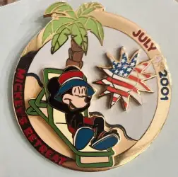 4th of July- Mickey’s Retreat is a Limited Edition (LE) 3000 pin from the 4th of July/Independence Day pin series. It was originally released on , 2001 and was available from Walt Disney World .