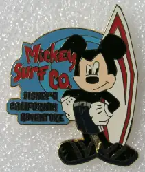 Mickey Surf Co. is an Open Edition pin from the Disney's California Adventure pin series. It was originally released on , 2001 and was available from Disneyland Resort .