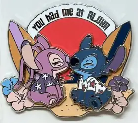Stitch and Angel - You Had Me at Aloha is an Open Edition pin from the Aulani Resort & Spa pin series. It was originally released on , 2024 and was available from Multiple Sources (WDW, DLR, etc.).