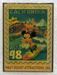 Mickey Surfing - 1998 California Convention is a Limited Edition (LE) pin from the American Society of Travel Agents (ASTA) pin series. It was originally released in January, 1998 and was available from an Officially Licensed Disney trading pin vendor (see description for more information).