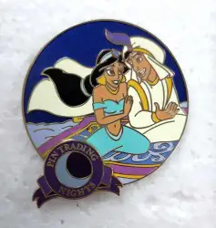 Jasmine and Aladdin is a Limited Edition (LE) 500 pin from the DIsneyland Pin Trading Night pin series. It was originally released on , 2024 and was available from Disneyland Resort .