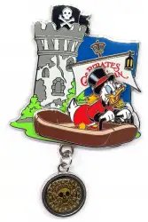 Scrooge Riding Pirates of the Caribbean is a Limited Edition (LE) 700 pin from the Fun Adventures Series pin series. It was originally released on , 2018 and was available from Disneyland Resort Paris .