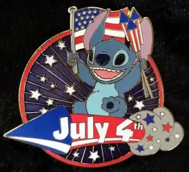 Stitch is a Limited Edition (LE) 250 pin from the 4th of July/Independence Day pin series. It was originally released on , 2014 and was available from Walt Disney Imagineering .