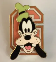 Goofy Orange G is an Open Edition pin from the Block Varsity Letters pin series. It was originally released in January, 2005 and was available from Multiple Sources (WDW, DLR, etc.).