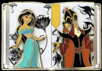 Jasmine & Jafar - Aladdin - CHASE is a Limited Edition (LE) 150 pin from the Pink A La Mode (PALM) - Disney Story Book Series pin series. It was originally released on , 2024 and was available from an Officially Licensed Disney trading pin vendor (see description for more information).
