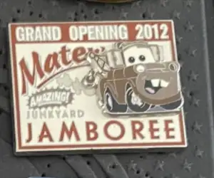 Tow Mater’s Junkyard Jamboree is a Limited Edition (LE) 2000 pin from the Cars Land Grand Opening Day pin series. It was originally released in January, 2012 and was available from Disneyland Resort .